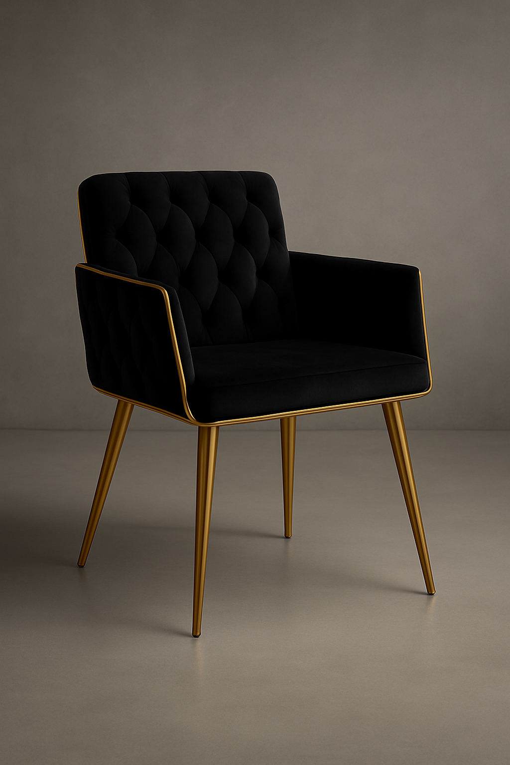 Luksusowe krzesło w stylu glamour, tapicerowane miękkim czarnym welurem, z elegancką złotą ramą. Idealne do stołów premium oraz nowoczesnych aranżacji.